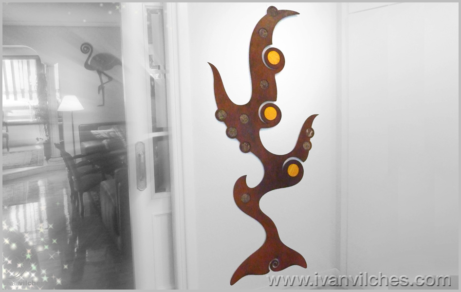 sculpture de wall realizada en piedra natural y acero cortén..