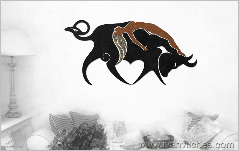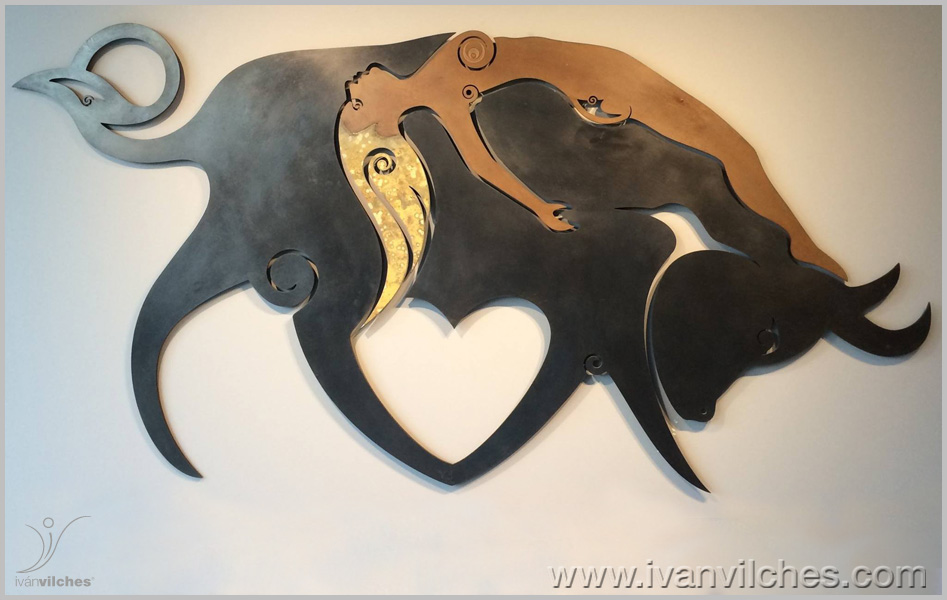 sculpture de wall realizada en piedra natural y acero cortén..